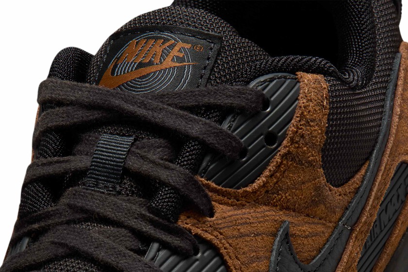 Visualmente, estas Air Max 90 se mueven entre lo elegante y lo casual, con una parte superior en tonos marrón que le da un rollo terracota suave y apetecible, rematada con detalles en negro que le aportan contraste y una vibra más urbana que runner técnica que da como resultado una zapatilla que casi parece más couture que deportiva, pero sin perder esa actitud sneakerhead que todos adoramos.
