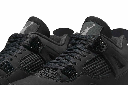 El apodo "Black Cat" no es casual para la estrella de la NBA: en sus años universitarios ya le llamaban así por su estilo sigiloso y letal en la pista, un felino acechando en cada salto. Esa esencia se traduce en estas Jordan 4: todo negro, desde la nubuck de la parte superior hasta la suela, con un acabado mate en gris grafito que refuerza esa sensación de oscuridad elegante.