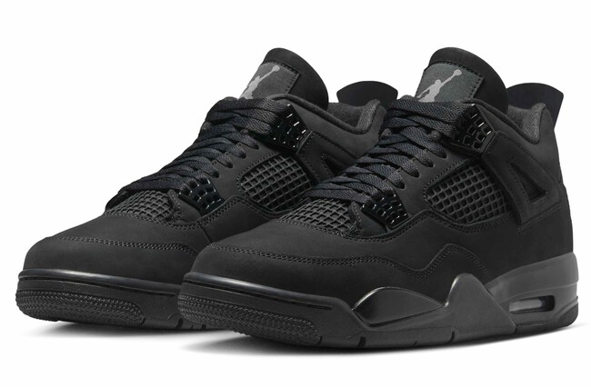 El apodo "Black Cat" no es casual para la estrella de la NBA: en sus años universitarios ya le llamaban así por su estilo sigiloso y letal en la pista, un felino acechando en cada salto. Esa esencia se traduce en estas Jordan 4: todo negro, desde la nubuck de la parte superior hasta la suela, con un acabado mate en gris grafito que refuerza esa sensación de oscuridad elegante.