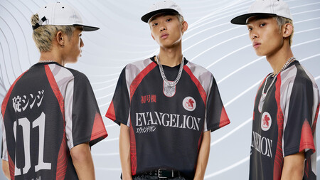Inspirada en el icónico anime de los 90, esta línea apuesta por camisetas oversize con gráficos llamativos de personajes como Rei, Asuka y el EVA‑01, combinando nostalgia y modernidad en diseños que llaman la atención sin perder el estilo, sin embargo, destaca un modelo especial, donde predomina el aspecto técnico de una camiseta de fútbol con un motivo tomado de la esencia futurista de la serie.