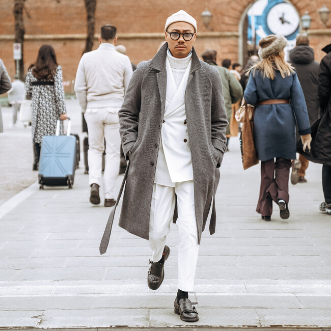 El abrigo largo tiene varias ventajas en este sentido: lo primero es que alarga la figura, aporta presencia inmediata, y transmite esa palabra clave del old-money: sobriedad. Que te lo pongas sobre un jersey de lana fina o una camisa sencilla lo convierte automáticamente en pieza central del outfit.
