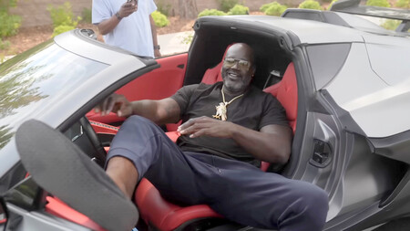 En el fondo, sí. Bajo el capó sigue el mismo poderoso motor V8 de 5.5 L con cigüeñal de plano partidos, que es el corazón del C8 Z06, y con su estruendo inconfundible. Lo que sí cambia es la dinámica. No es el tipo de coche que explore cada curva al límite… y la posición del techo, tan baja, hace que incluso sobresalga la cabeza de Shaq por encima.