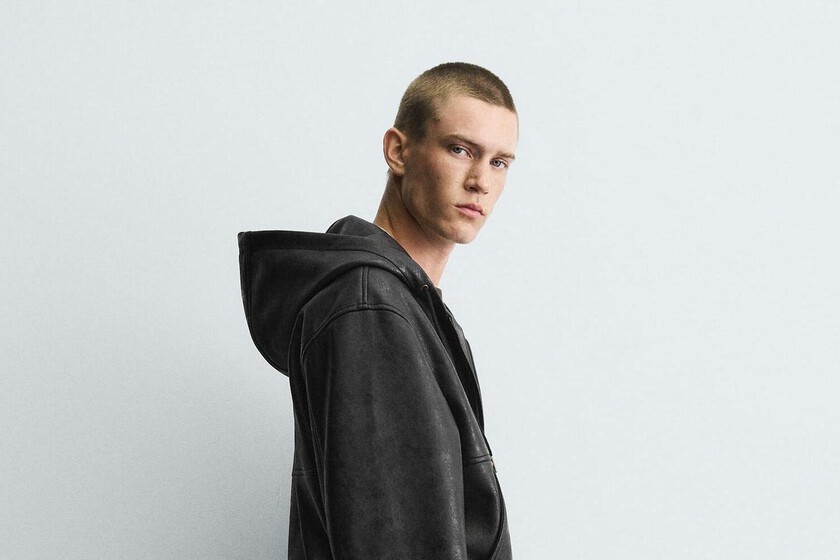 Lo más llamativo de esta cazadora es, precisamente, ese aire híbrido que mezcla la estética streetwear de una sudadera con capucha con las líneas más atrevidas de una cazadora efecto piel.