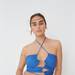 - Top cropped de escote pico con hebilla forrada, 22,95 euros.