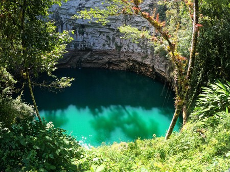 Este lugar es una joya natural que cautiva a quienes buscan experiencias únicas con paisajes impresionantes de fondo: este cenote a cielo abierto se encuentra a casi 2,000 metros sobre el nivel del mar, una característica inusual que lo distingue de otros cenotes en México.