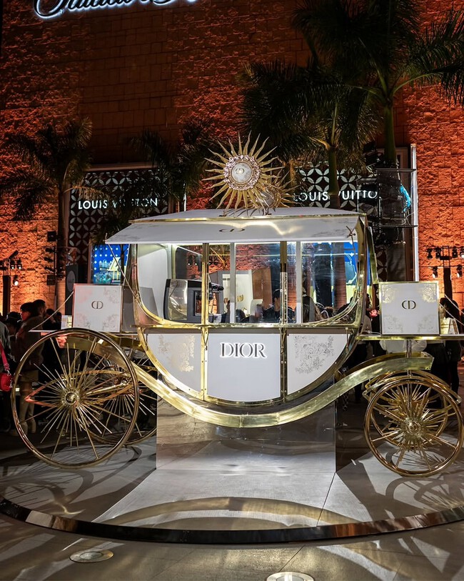 Como parte de su menú, podrás elegir entre ocho bebidas y dos tipos de postres, para ordenar, entras por la parte en donde está la decoración de Dior fuera de El Palacio de Hierro, en la primera isla podrás ordenar y pagar tu orden, para después salir a donde está el carruaje, presentar tu ticket y esperar tu pedido.