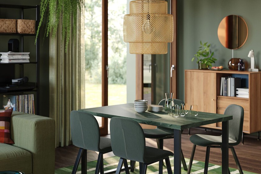 Esta tendencia es para ti si te da satisfacción que los muebles y soluciones de tu comedor encajen a la perfección con sus dimensiones. Por eso, nuestra recomendación si buscas algo a medida -tanto del espacio como de las circunstancias- es que escojas muebles extensibles. Entre las novedades de IKEA puedes encontrar la ÅLHULT Mesa extensible, 199€, disponible tanto en negro y marrón como en beige y marrón. Con ella, podrás ampliar el aforo de 6 a 8 comensales, aunque también es interesante para presentar esas recetas que ocupan mucho espacio, como un arroz al horno, un cocido con muchas fuentes o una raclette.