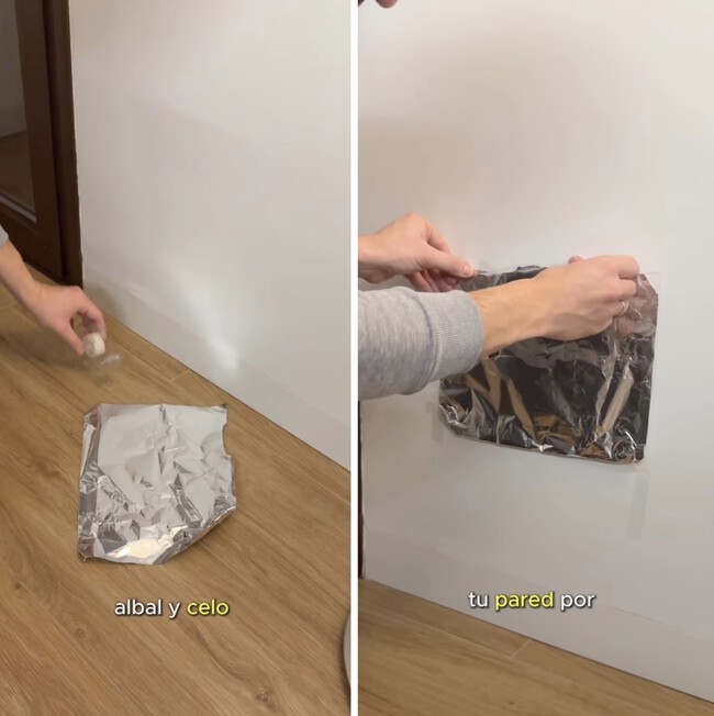 El tip que comparte a través de un vídeo en redes el experto arquitecto Máximo Caballero, nos ayudaría a evitar obras innecesarias en busca del origen de las humedades para poner fin desde la raíz. Consiste en pegar un trozo de papel de aluminio en la pared o el techo donde se ha generado esa humedad: "Este truco te va a volar la cabeza. Soy arquitecto y cuando me llaman por una humedad, esto es lo que hay que hacer," explica.