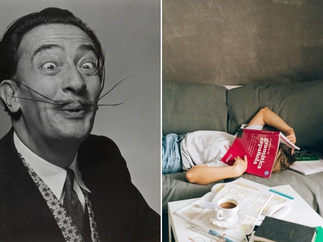 Cómo practicar las microsiestas de Dalí. En su libro, el artista catalán cuenta su ritual paso a paso. Él se sentaba en un sofá bien erguido y sostenía una llave de metal en la mano. Justo debajo colocaba un plato de acero. Al dormirse se le caía la llave y golpeaba el plato con estruendo, sirviéndole de despertador. No era el único genio que usaba este truco: Se dice que Edison lo hacía con pelotas de acero y sartenes.