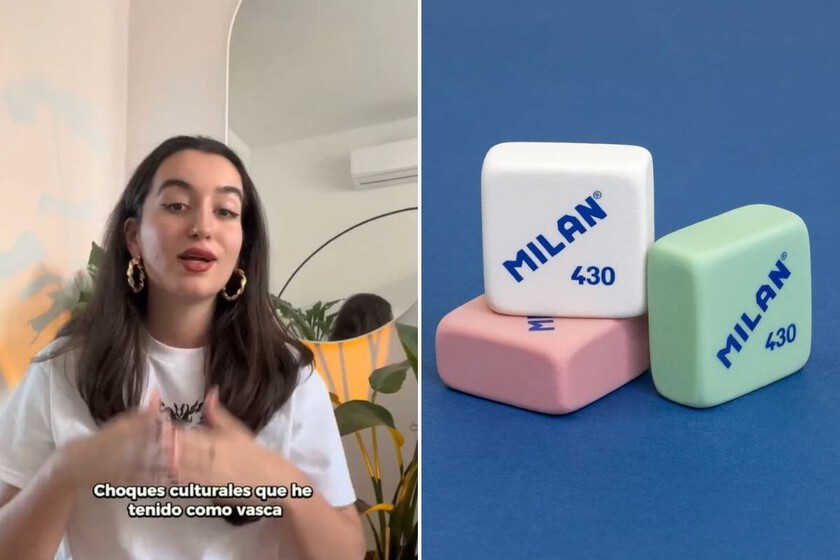 El segundo choque cultural que menciona es, de lejos, nuestro favorito. Una oda a la riqueza y magia del léxico castellano, si me preguntan. Y es que resulta que los vascos llaman a la goma de borrar Milán 'borragoma'. Como lo oyes, que vocablo tan completo. "Es la mejor construcción lingüística de la historia" afirma ella y para que vamos a decirle que no, si tiene razón.