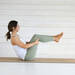 Nos estiramos sobre la esterilla, llevando los brazos por encima de nuestras cabezas y desde esa posición y con el core activo, vamos a ir flexionando la columna hasta sentarnos, manteniendo las piernas ligeramente separadas y extendidas. Una vez ahí, sentados con la columna bien recta y las piernas estiradas, vamos a ir flexionando la columna hacia delante, vértebra a vértebra, desde las cervicales a las lumbares y manteniendo los brazos paralelos al suelo y en línea con los hombros. Las piernas no se mueven. Regresamos a la posición inicial y repetimos el ejercicio un total de cuatro veces para estirar la columna y trabajar la flexibilidad.