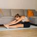 Flexiona la rodilla derecha y lleva el peso del cuerpo hacia ese lado mientras bajas el torso para tocar el suelo con la mano izquierda. Después, vuelve al centro en posición de sentadilla y repite el movimiento hacia el otro lado.