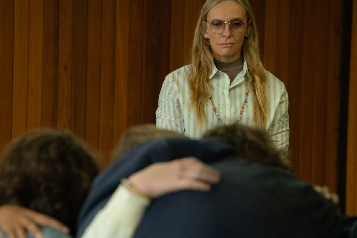 Y aquí es donde entra en escena Toni Collette (que está magistral como de costumbre) en la piel de Evelyn Wade. Ella es consejera, gurú y figura maternal de cara a la galería pero, en realidad, es puro control, manipulación y una amenaza latente. Cada vez que aparece en pantalla, la tensión.