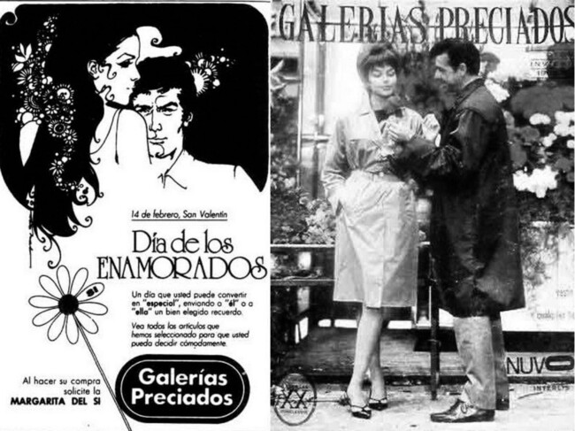 Durante los años siguientes, desde Galerías Preciados no cejaron en su objetivo de hacer del día de San Valentín algo popular, que trascendiera socialmente. En 1951 en su publicidad afirmaba que "si no existiera el Día de San Valentín, habría que inventarlo". En los años 60 la costumbre ya estaba socialmente aceptada e incluso se estrenó una película titulada 'El día de los enamorados' con Concha Velasco, Fernando Fernán Gómez y Tony Leblanc como protagonistas, que contaba las aventuras de un santo, San Valentín, que bajaba una vez al año a la tierra para ayudar a las parejas de enamorados con sus problemas.