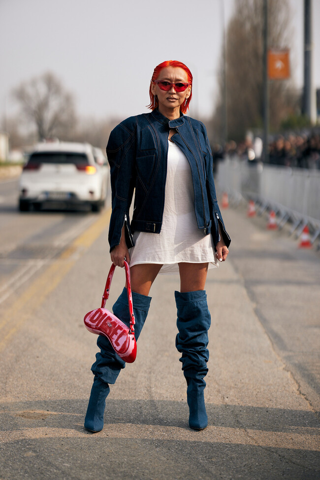 Aunque el vestido no es el mismo, podemos inspirarnos en este look del street style de París, formado por unos tacones transparentes y un bolso del mismo tono. Un total white súper elegante que podremos llevar tanto de noche como de día a la oficina en verano o a una cena con amigas en nuestro restaurante favorito.