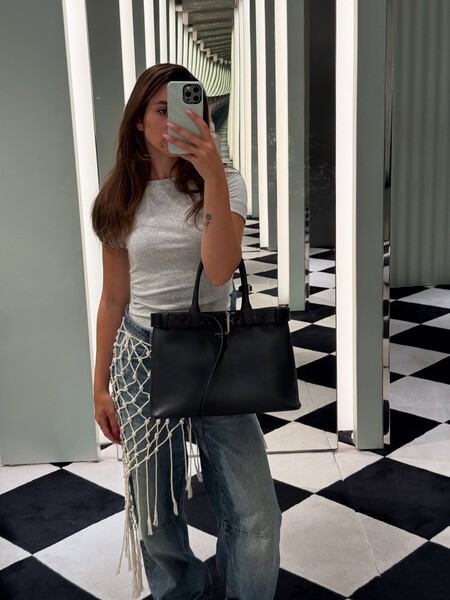 El bolso marrón chocolate se puede sustituir por una bandolera más cómoda con detalles de tachuelas que aporten un guiño muy cool al conjunto. Las joyas juegan un papel importante y las piezas de plata son una elección muy acertada que añadirán luz y brillo al outfit.