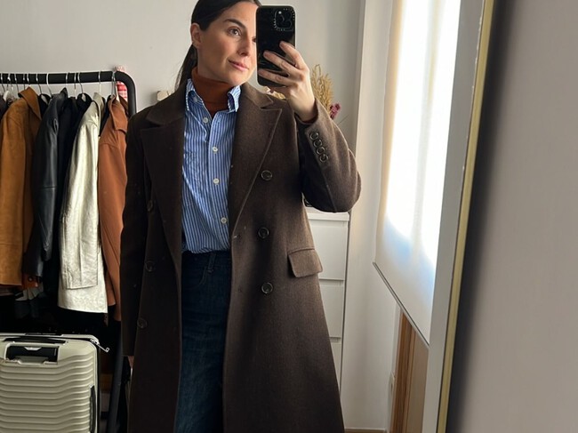 Este abrigo bebe de la sastrería tradicional masculina, y la reinterpreta con un toque más femenino. En cuanto a la forma y los tejidos, esta joya de fondo de armario puede ser largo o midi, con solapas amplias, botones cruzados o rectos y tejidos como lana, cashmere o mezclas algo más ligeras pensadas para el entretiempo (o para el clima en Sevilla, donde el invierno son los padres).