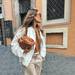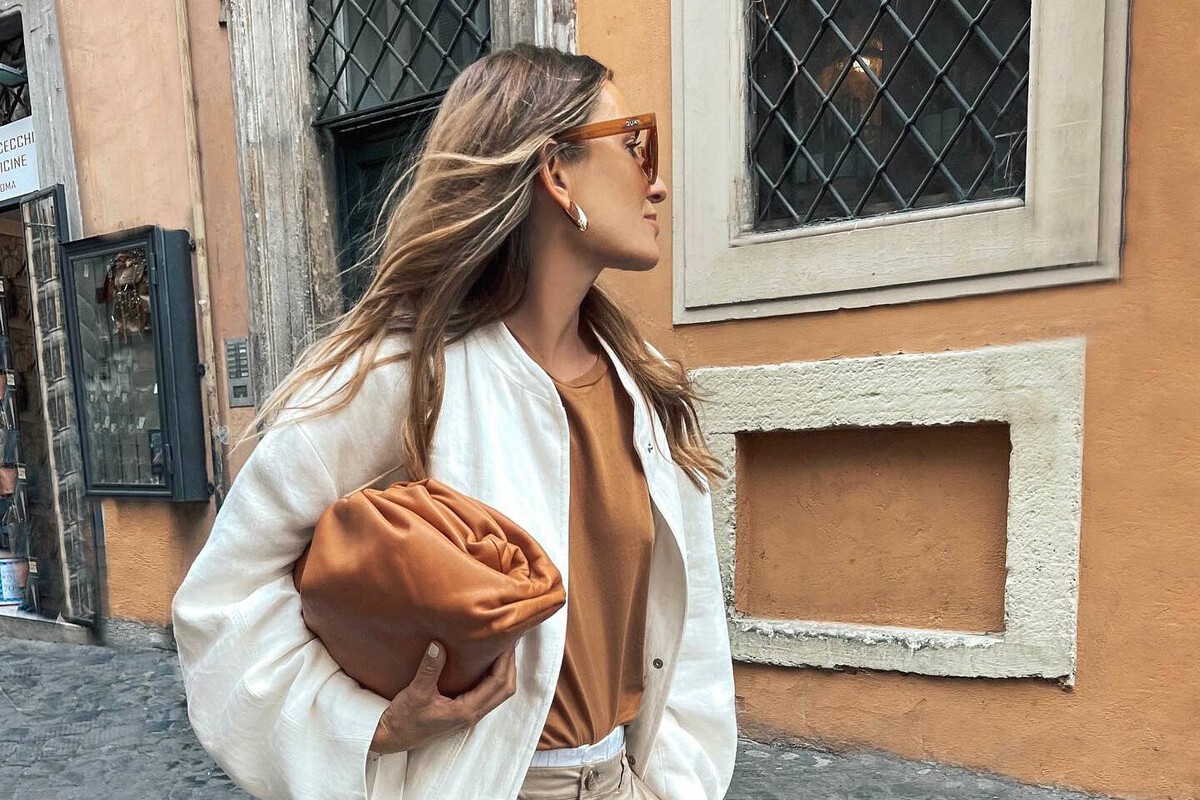 Esta propuesta de la influencer Erea Louro es un buen ejemplo para combinar los pantalones beige de Sfera. Un look formado por una camisa blanca que jamás nos falla, siendo el mejor básico de armario y unas sandalias negras discretas. Un conjunto muy sencillo que podemos elevar con los complementos.