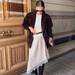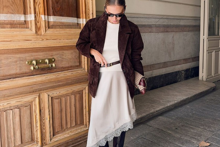 Para lucir estas botas altas con estilo existen muchas fórmulas, pero nosotras apostamos por la combinación clásica pero ganadora que propone Linn Odman: un maxi abrigo de paño en marrón chocolate, minifalda, jersey vainilla y medias de cristal. Un look formal-informal que podemos llevar incluso a la oficina y que nosotras completaríamos con un maxi bolso de ante para sumar un toque actual en clave 2026.