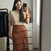Por ejemplo, esta en marrón chocolate de efecto piel de ante es perfecta para ir a la última en dos aspectos: el tejido y el color del año. Además, su silueta tipo lápiz realza nuestro tipazo de forma natural y va genial con botas altas. Aunque luce cara, en realidad es de las más económicas por 29,95 euros.