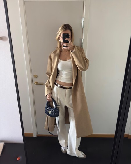 Los conjuntos de un solo color son elegantes. Para entretiempo es una opción perfecta que podemos combinar con las zapatillas Adidas. El rosa y el marrón chocolate hacen match y elevan cualquier look. Para agregar más rollazo, un bolso bandolera quedará muy bien y será cómodo de llevar.