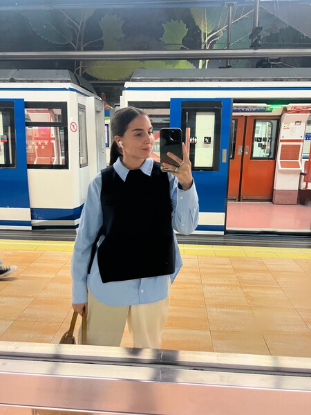 Combinar unas zapatillas aguamarina con estilo es muy fácil y este conjunto de la influencer María Fernández Rubies es una prueba de ello. Un outfit formado por un total look beige compuesto por una falda de globo y una chaqueta tipo bomber súper cool. Una opción con mucho rollazo que queda genial con el bolso turquesa.