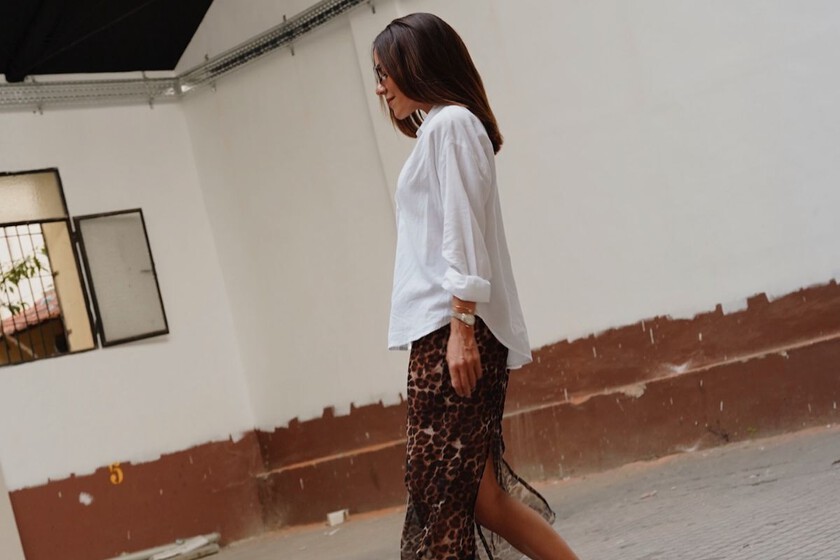 Y la joya de la corona la encontramos en Mango. Una falda con maxi abertura y estampado colorista que no necesita nada más que una blusa blanca para crear un look fresco y elegante. La tenemos por 69,99 euros.