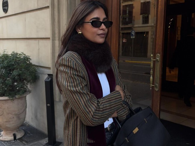 Las faldas de cuadro son otra de las tendencias omnipresentes este invierno 2026 y la de Paula Ordovás nos parece una excusa ideal para sacar nuestros botines de serraje. Para completar el look ella elige un cárdigan con cuello tipo polo y nosotras añadiríamos un buen abrigo marrón chocolate de esos envolventes para subir la temperatura y marcarnos un 360 de las tendencias del año.