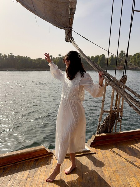 Cuando llega el buen tiempo, nos encanta llevar conjuntos monocolor porque estilizan y son muy elegantes. Esta propuesta es un acierto y queda genial con las bailarinas Gioseppo. Un look formado por unos pantalones blancos bombachos, un top de Prada y una camisa azul abierta que añade rollazo.