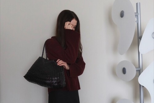 El burdeos es uno de los colores más populares y esta propuesta es ideal para combinar los zapatos de Stradivarius. Un abrigo largo siempre eleva el look, aunque en mi opinión lo combinaría con un vestido negro que sumará contraste al outfit. Un conjunto sencillo y muy refinado que podemos encontrar en nuestro armario.