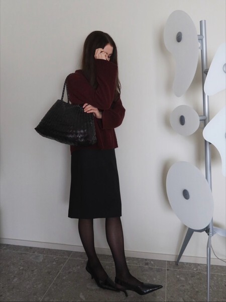 El burdeos es uno de los colores más populares y esta propuesta es ideal para combinar los zapatos de Stradivarius. Un abrigo largo siempre eleva el look, aunque en mi opinión lo combinaría con un vestido negro que sumará contraste al outfit. Un conjunto sencillo y muy refinado que podemos encontrar en nuestro armario.