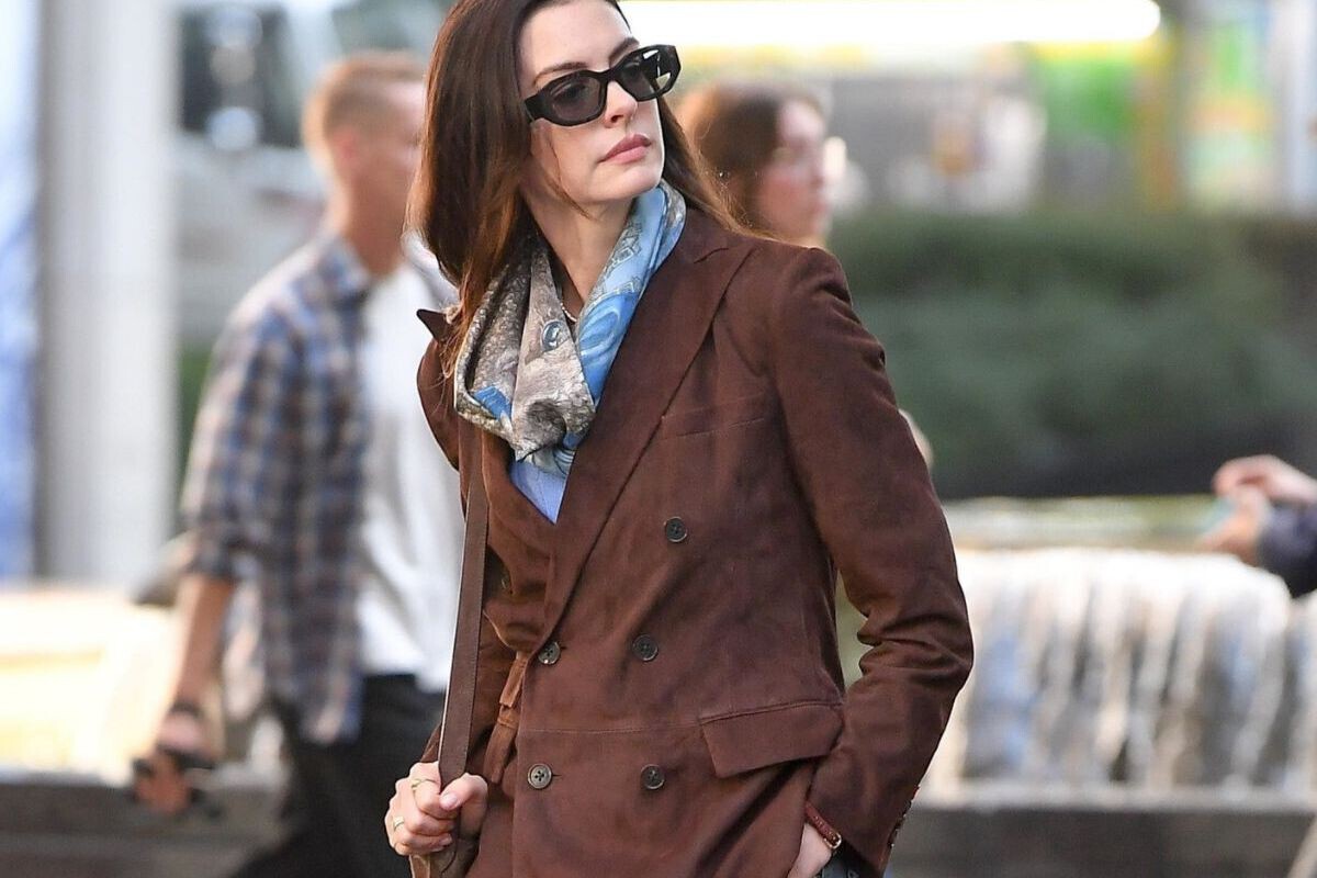 Una de las imágenes que se ha filtrado es de Anne Hathaway -en adelante Andy- con un look casual ideal compuesto por jeans, botines animal print, chaqueta de ante marrón y pañuelo estampado al cuello. Un estilismo muy fácil de copiar que incluye un accesorio de lujo que tiene todas las papeletas para ser viral (y copiado) hasta la saciedad este 2026.
