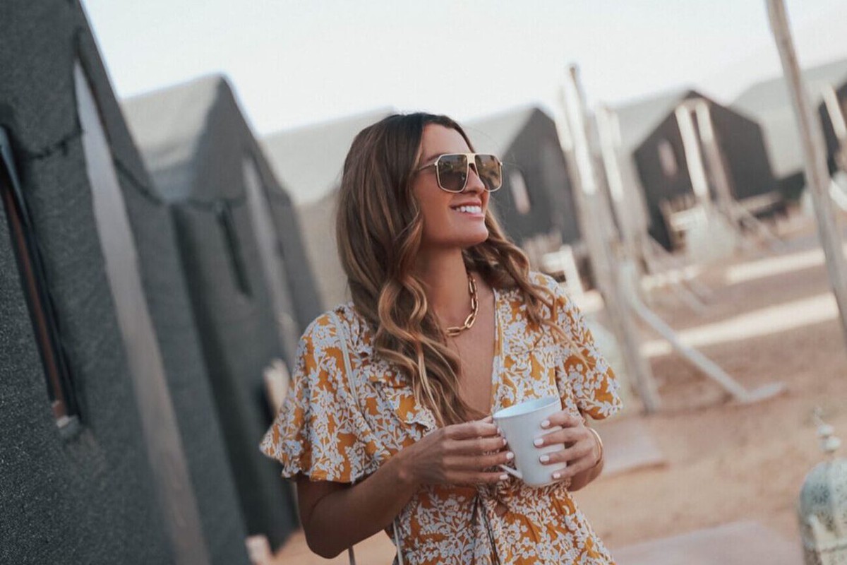 En esta propuesta de la influencer Hollie Mercedes el bolso de Lululemon es un acierto. Un look formado por unos pantalones vaqueros y un chaleco que ha combinado con un top negro. Un conjunto con mucho rollazo que ha completado con unas sandalias con plataforma muy cómoda.