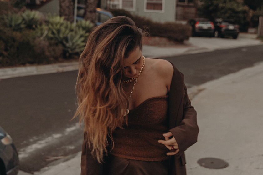 Esta propuesta de la influencer Gabriele Gzimailaite es muy elegante y arrasará tanto de día como de noche. Los mocasines de Gioseppo son un buen ejemplo para combinarlo. Un look formado por un vestido efecto americana oversize. Este es de color dorado, el favorito para la Navidad.