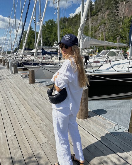 Esta propuesta de la influencer Agostina Saracco es perfecta para llevar los pantalones blancos firmados por Ralph Lauren, combinados con un top de tirantes fluido. Un look muy sencillo y cómodo que podemos lucir con unas sandalias planas negras que agreguen contraste o con unas alpargatas que añadan unos centímetros de estilo.
