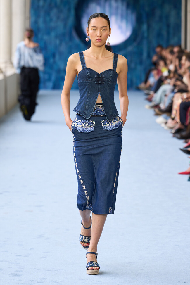 Este chaleco vaquero tiene un diseño muy original con sus mini flores bordadas. Tiene un corte entallado y su escote es en pico. Una prenda que se puede llevar sola o encima de una blusa, dándole un aspecto más moderno y dosmilero. Las pinzas le añaden un toque más elegante y estilizan la figura. Su precio en H&M es 24,99 euros.