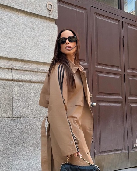 Esta propuesta de la influencer Maria Tilve es súper actual y quedará genial con las zapatillas Adidas. Un look formado por un abrigo de pelo en tono gris, una camiseta básica y un pantalón de chándal. Un outfit casual con tintes deportivos que agregan un toque muy cool. El bolso shopper juega un papel fundamental, dándole un guiño todoterreno al conjunto.
