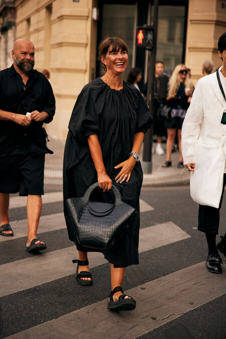 La respuesta rápida a cómo combinar este bolso de Bimba y Lola sería: con todo nuestro armario prácticamente. Pero en esta revista estamos para dar ideas y aportar inspiración, nada de respuestas fáciles (para algo tenemos acceso a las imágenes más inspiradoras de la moda). Por ejemplo, en el street style de París encontramos un look tan versátil como el protagonista de hoy.