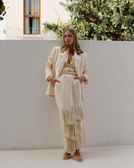 Los looks monocolor son siempre una buena opción. Quedan genial y muy elegantes. Esta propuesta de la influencer María Fernández Rubies es fácil de copiar y seguro que tendremos todas las prendas en nuestro fondo de armario. Además, este bolso queda bien y es un must con este outfit.