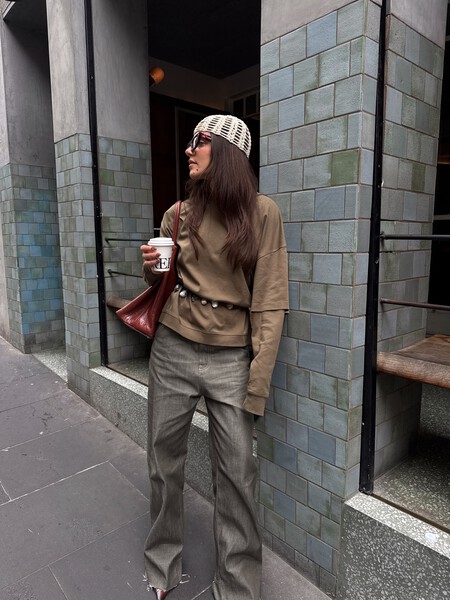 Un outfit que se completa con un bolso shopper en el mismo tono, aunque se puede sustituir por una bandolera acolchada en color musgo que aporte un toque alegre al conjunto. En cuanto a los complementos, un coletero XXL quedará genial tipo scrunchie.