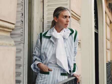 Se trata del maxi lazo en el cuello, un toque muy 70s que siempre ha aparecido en blusas ultrafemeninas y que ahora encaja a la perfección con esta camisa básica para que deje de serlo por completo. El resultado es una de esas piezas de fondo de armario que podemos llevar una y otra vez durante toda la vida.