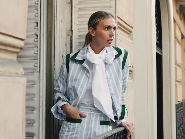 Si yo fuera rica probablemente vestiría de Loewe. Es mi firma favorita por muchas razones, pero especialmente por sus bolsos. Aunque prendas cotidianas como esta nueva versión de la camisa azul también me parecen súper interesantes, especialmente por la manera en que mezcla los detalles clásicos de la camisa masculina con un toque súper femenino.