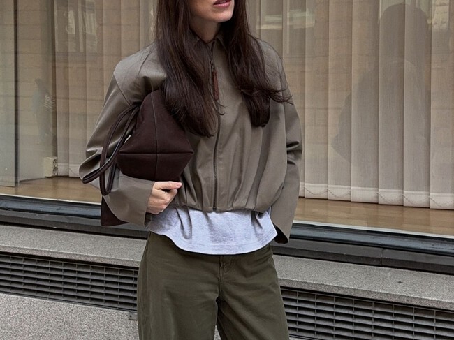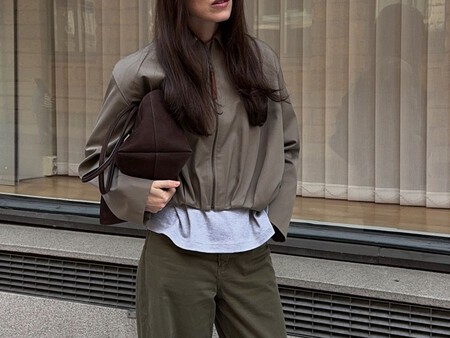 En Zara encontramos la omnipresente chaqueta efecto napa pero adaptada a la perfección a la silueta bomber. El resultado es una pieza versátil, clásica y a la vez, rompedora. Además, el color verde oliva le da ese toque pura tendencia adaptado al otoño 2025 por 49,95 euros.