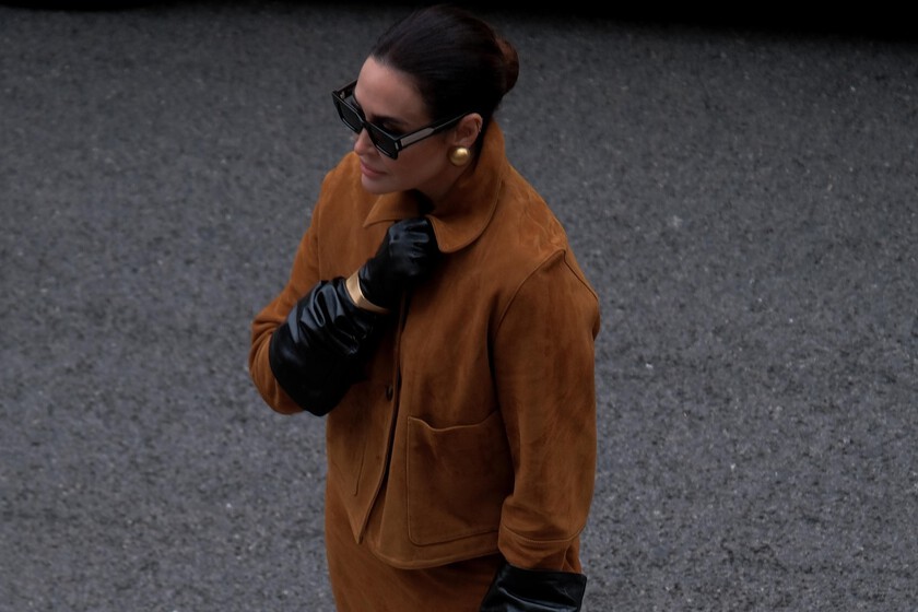 Nosotras añadiríamos a la ecuación un bolso shopper tamaño XXL y unos calcetines rojos para cuando refresque. Por lo demás, un look de sobresaliente de los muchos que permite una buena chaqueta bomber de ante en nuestro armario.