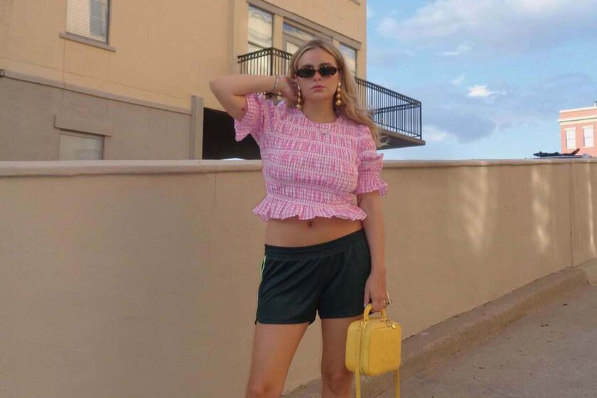 En verano siempre apostamos por looks muy fresquitos, pero sin perder nuestra esencia. En esta propuesta, combinar bailarinas tipo Merceditas y un short con vibes de chandal es posible. Además, la blusa rosa cropped mantiene ese equilibrio entre las prendas con un estilo más casual y las otras más deportivas. No falta el color y es perfecto para llevar a comprar o, simplemente, a hacer turismo durante las vacaciones de verano. Para darle un toque más urbano, se puede cambiar esos shorts por unas bermudas más largas.