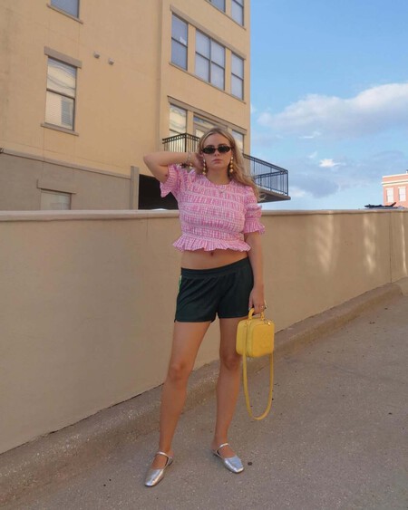 En verano siempre apostamos por looks muy fresquitos, pero sin perder nuestra esencia. En esta propuesta, combinar bailarinas tipo Merceditas y un short con vibes de chandal es posible. Además, la blusa rosa cropped mantiene ese equilibrio entre las prendas con un estilo más casual y las otras más deportivas. No falta el color y es perfecto para llevar a comprar o, simplemente, a hacer turismo durante las vacaciones de verano. Para darle un toque más urbano, se puede cambiar esos shorts por unas bermudas más largas.