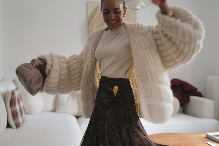 La chaqueta de punto oversize en color crema es al invierno lo que la camisa blanca a la primavera: un básico. Por eso no está demás tener más de una en el armario y esta efecto mezclilla es ideal, calentita y combina de perlas con un pantalón marrón chocolate por 35,95 25,95 euros.