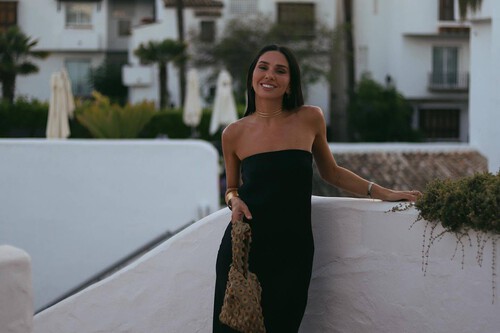Un vestido negro siempre será la mejor opción para elevar cualquier look de verano. Este modelo está hecho con una mezcla de lino y su diseño es evasé y midi. El escote es de pico y no tiene mangas, sino tirantes finos. Su estética es muy sencilla y combinarlo será fácil. El precio en la web oficial de Mango es 49,99 euros.