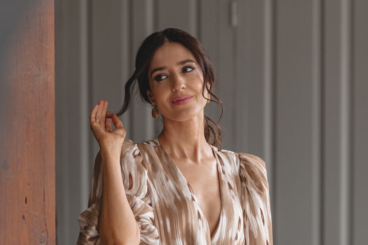 Este vestido es fluido con un escote de pico y unas mangas de capa pura tendencia. El corte es midi y tiene un detalle de frunce y un fajín en la cintura que resulta favorecedor. La cintura es de nido de abeja y un elástico en la espalda que se ajusta a la perfección. Un modelo en tono rosa, uno de los colores más populares de la temporada, ideal para llevar con unas sandalias doradas o plateadas. El precio en la web oficial de Cortefiel es 59,99 euros (antes 99,99 euros).