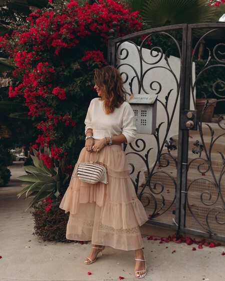 Vuelven las faldas de encaje con el buen tiempo y este look de la influencer Invitada perfecta es un buen ejemplo para llevar las sandalias Clarks. Un outfit que ha completado con una camisa vaquera un top lencero. Se trata de un conjunto muy elegante que podemos llevar de lunes a domingo.